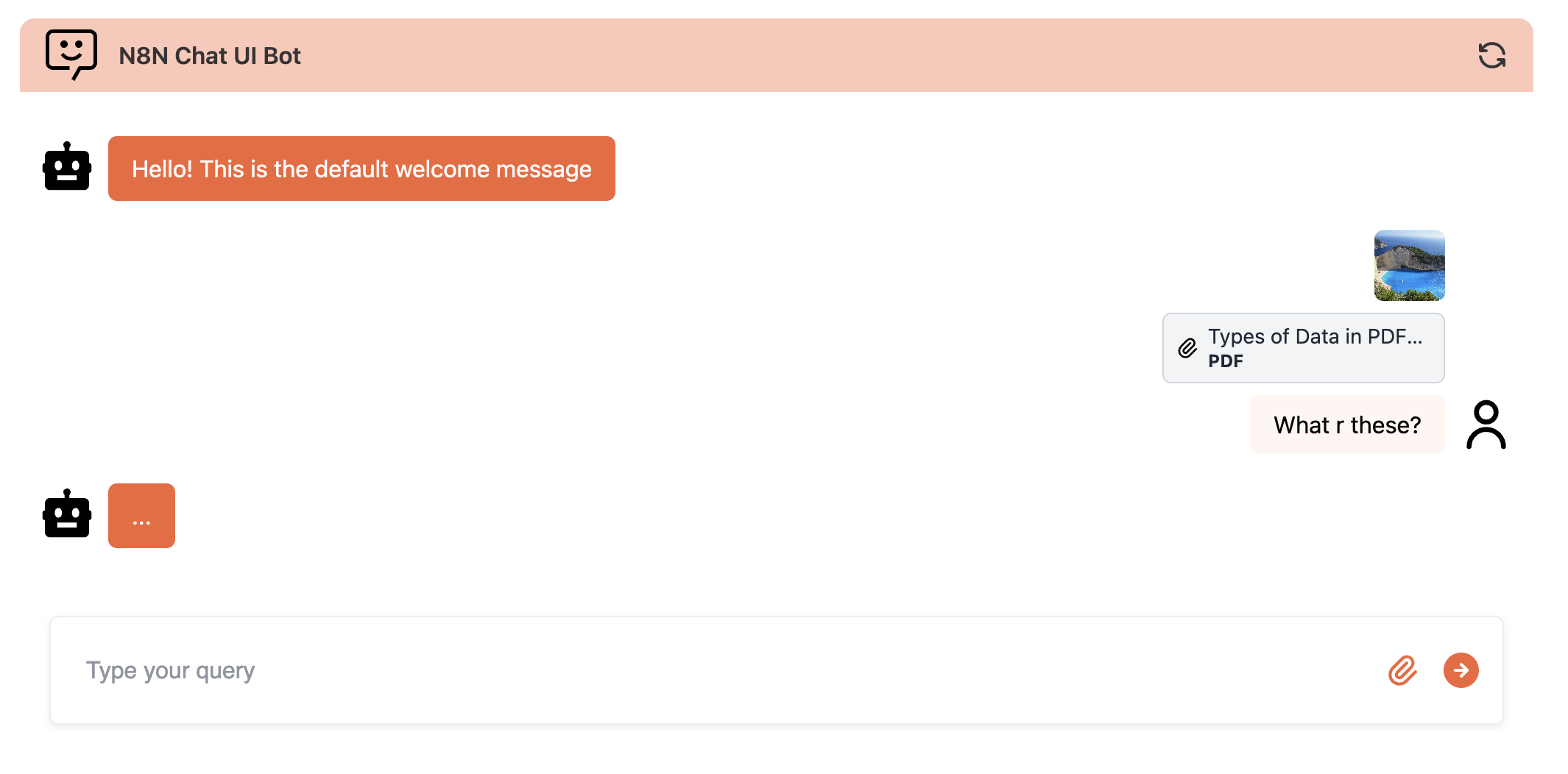 DashLynk allows users to upload files and images directly from the chat widget. These files are then sent to your n8n workflow for further processing.