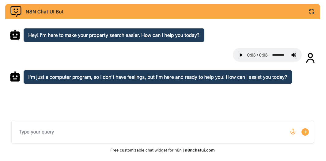 DashLynk allows users to record and send audio messages directly from the chat widget. These audio files are sent to your n8n workflow for transcription and further processing.